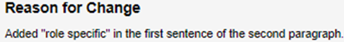 o Create a change request by copying the text in Reason for Change if you'd like this change made in your manual.