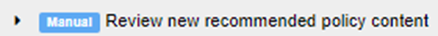 The notification will have a blue "manual" label and the title will state "Review New Recommended Policy Content".